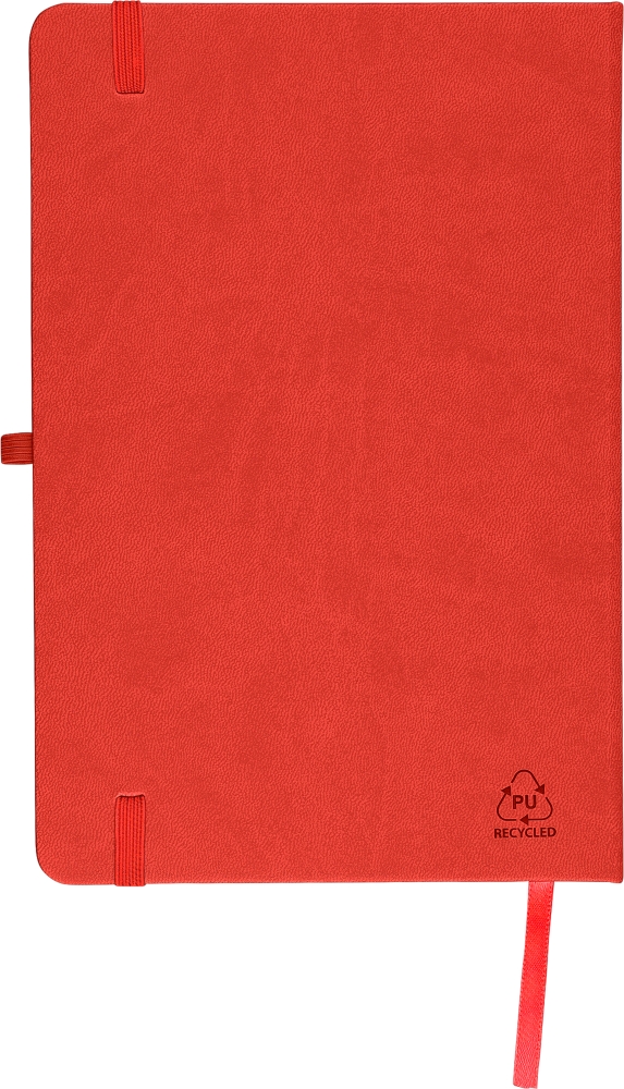 Poznámkový blok A5 s recyklovaným tvrdým obalem a reliéfním recyklovaným logem na zadní straně. Vyrobeno z odolných, flexibilních materiálů (PU), které poskytují pohodlí, odpružení a dlouhou životnost. Obálka je vhodná pro laserové gravírování, což odhaluje jemný barevný efekt tón v tónu. Obsahuje 80 linkovaných stránek z 70 g/m2 papíru s gumičkou v barvě odpovídající barvy, fixem a poutkem na pero. Papír v tomto poznámkovém bloku má certifikaci FSC® Mix. Rozměry: 21 cm