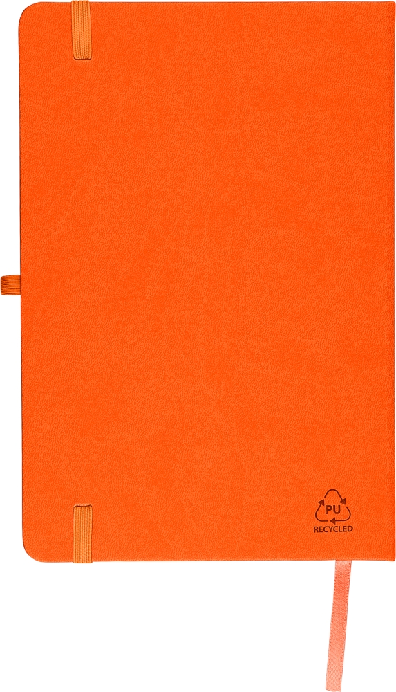 Poznámkový blok A5 s recyklovaným tvrdým obalem a reliéfním recyklovaným logem na zadní straně. Vyrobeno z odolných, flexibilních materiálů (PU), které poskytují pohodlí, odpružení a dlouhou životnost. Obálka je vhodná pro laserové gravírování, což odhaluje jemný barevný efekt tón v tónu. Obsahuje 80 linkovaných stránek z 70 g/m2 papíru s gumičkou v barvě odpovídající barvy, fixem a poutkem na pero. Papír v tomto poznámkovém bloku má certifikaci FSC® Mix. Rozměry: 21 cm