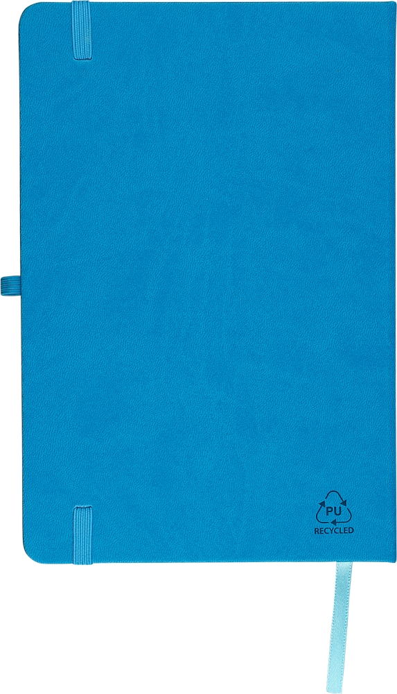 Poznámkový blok A5 s recyklovaným tvrdým obalem a reliéfním recyklovaným logem na zadní straně. Vyrobeno z odolných, flexibilních materiálů (PU), které poskytují pohodlí, odpružení a dlouhou životnost. Obálka je vhodná pro laserové gravírování, což odhaluje jemný barevný efekt tón v tónu. Obsahuje 80 linkovaných stránek z 70 g/m2 papíru s gumičkou v barvě odpovídající barvy, fixem a poutkem na pero. Papír v tomto poznámkovém bloku má certifikaci FSC® Mix. Rozměry: 21 cm