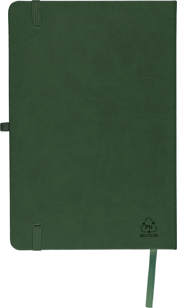 Poznámkový blok A5 s recyklovaným tvrdým obalem a reliéfním recyklovaným logem na zadní straně. Vyrobeno z odolných, flexibilních materiálů (PU), které poskytují pohodlí, odpružení a dlouhou životnost. Obálka je vhodná pro laserové gravírování, což odhaluje jemný barevný efekt tón v tónu. Obsahuje 80 linkovaných stránek z 70 g/m2 papíru s gumičkou v barvě odpovídající barvy, fixem a poutkem na pero. Papír v tomto poznámkovém bloku má certifikaci FSC® Mix. Rozměry: 21 cm