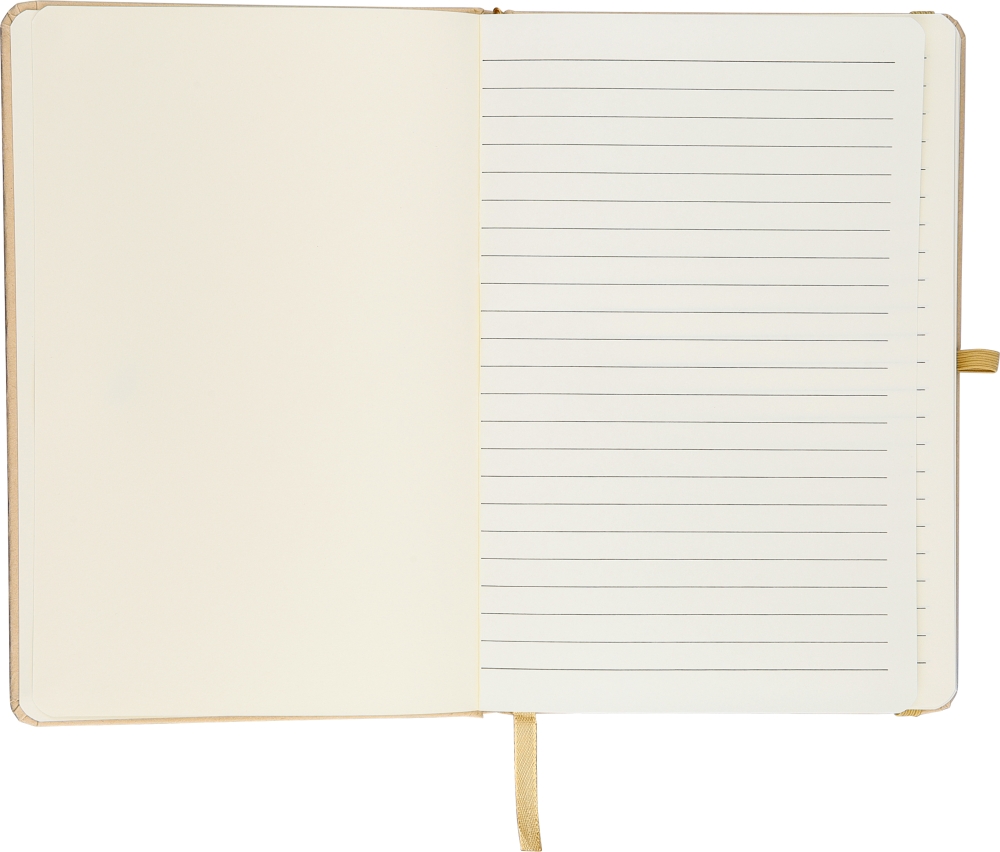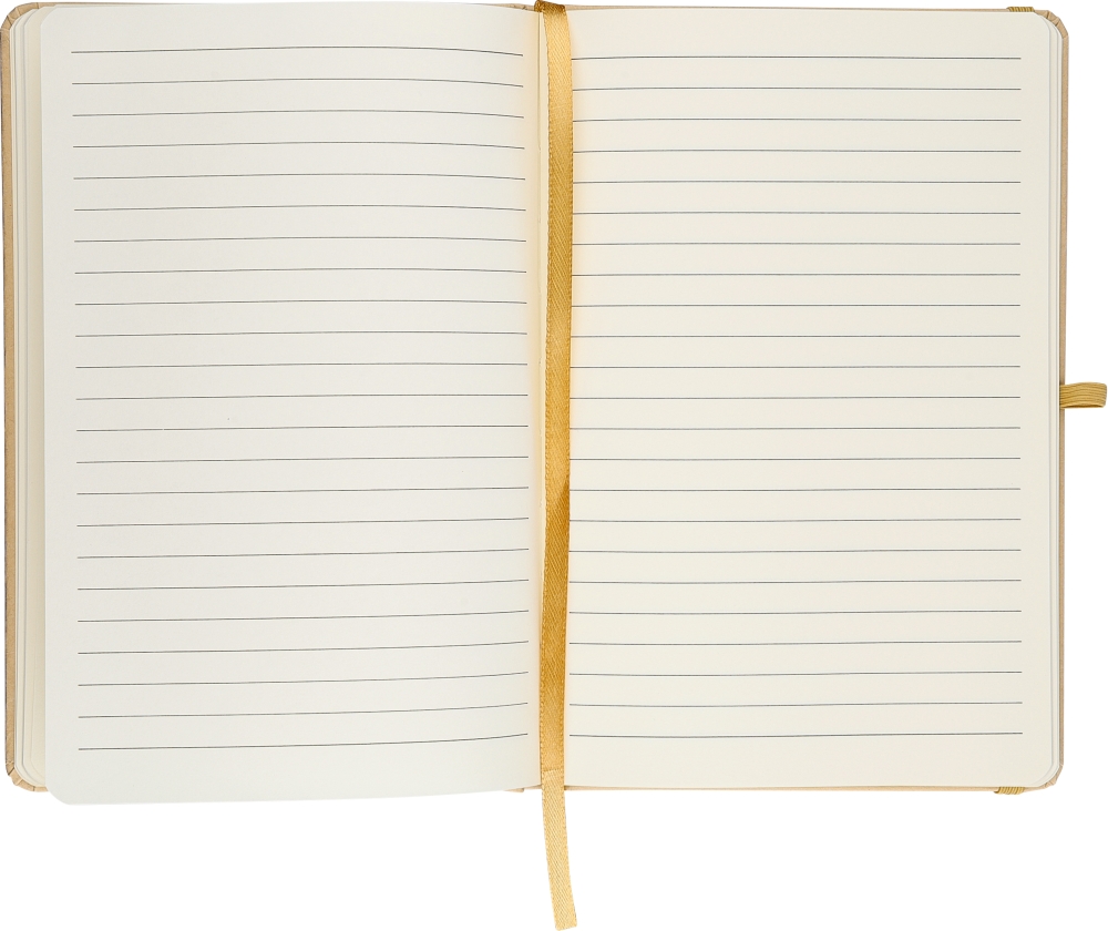 Zápisník A5 s kraftovou pevnou vazbou a hliníkovou fólií, určený pro laserové gravírování se zrcadlovým efektem, který se po gravírování objeví. Obsahuje 80 linkovaných stránek z 70g/m2 papíru pro plynulé psaní. Papír v tomto zápisníku má certifikaci FSC® Mix. Povrchová úprava je doplněna barevnými detaily, včetně gumičky, fixu a poutka na pero. Rozměry: 21 cm
