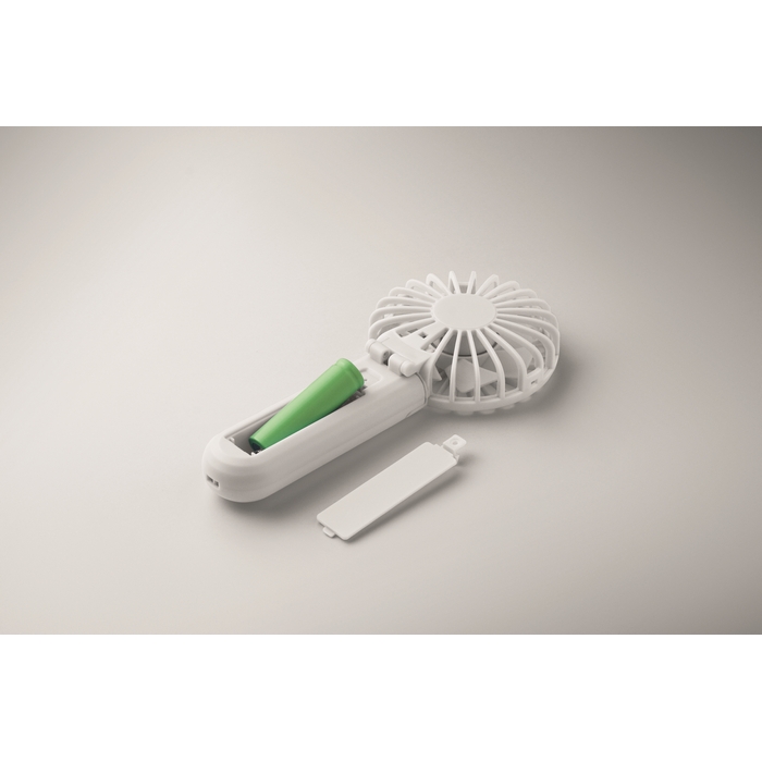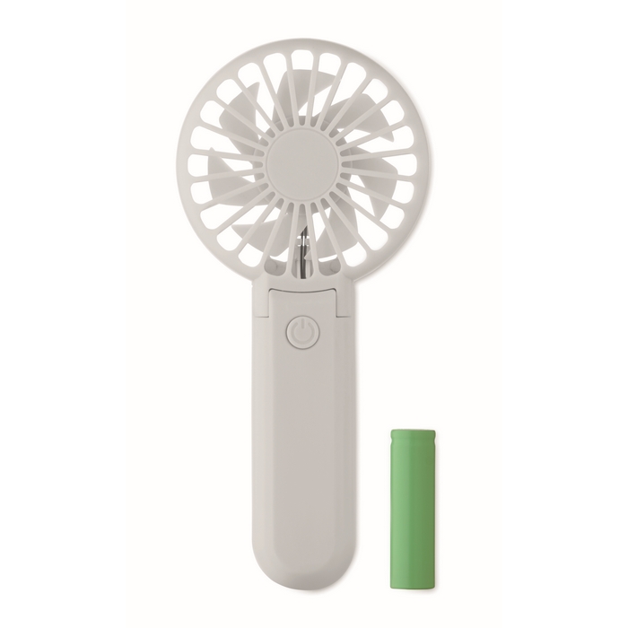 Přenosný skládací ventilátor z ABS plastu se 3 rychlostmi. Lze použít jako ruční nebo stolní ventilátor. Součástí balení je 1 vyměnitelná a dobíjecí 14500 lithiová baterie s kapacitou 500 mAh. Rozměry: 8 x 17.2 x 2.7 cm