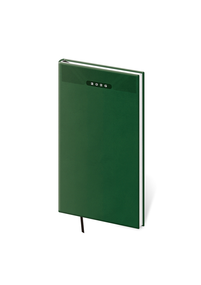 Matná koženka Vivella představuje kvalitní, na dotek příjemný a zároveň velmi oblíbený materiál. Tloušťka materiálu umožňuje dosáhnout perfektních výsledků při ražbě bez fólie. Diář obsahuje: osobní údaje, plánovač dovolené (měsíční přehled), plánovací kalendář, mezinárodní svátky, roční výhled, týdenní layout, adresář. Rozměry: 8 x 15 cm.