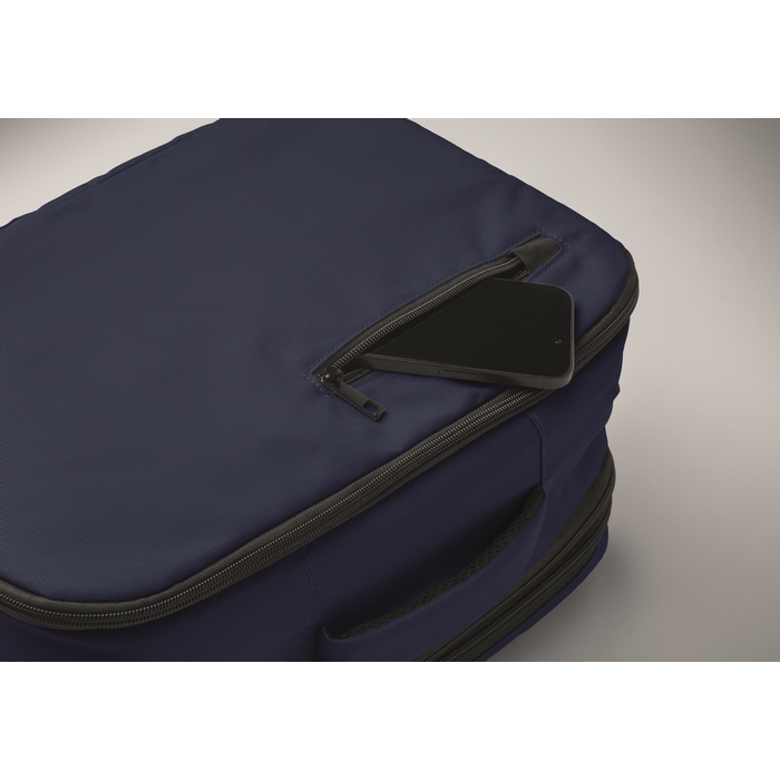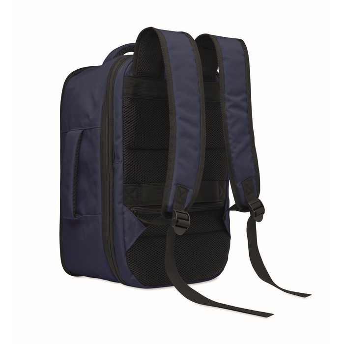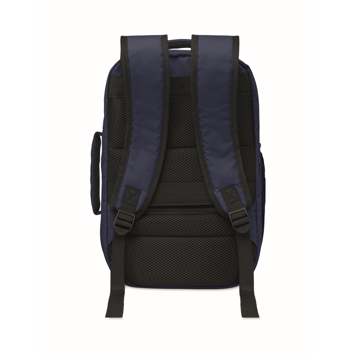 Kabinový batoh vyrobený z polyesteru 600D RPET s otevíráním pod úhlem 180o. Hlavní přihrádka se dvěma otevřenými oddíly, polstrovaná kapsa na 15 notebook a popruh na zavazadlo. Rozměry: 25 x 20 x 40 cm