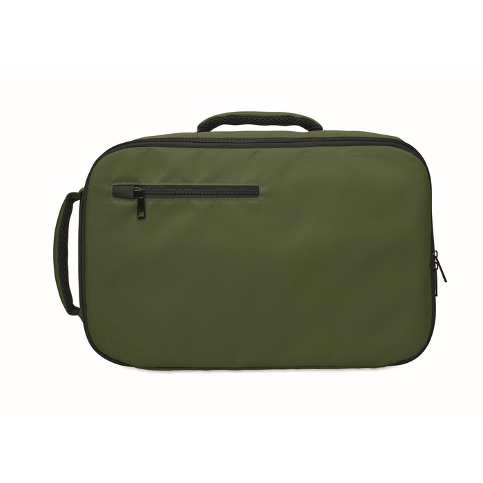 Kabinový batoh vyrobený z polyesteru 600D RPET s otevíráním pod úhlem 180o. Hlavní přihrádka se dvěma otevřenými oddíly, polstrovaná kapsa na 15 notebook a popruh na zavazadlo. Rozměry: 25 x 20 x 40 cm