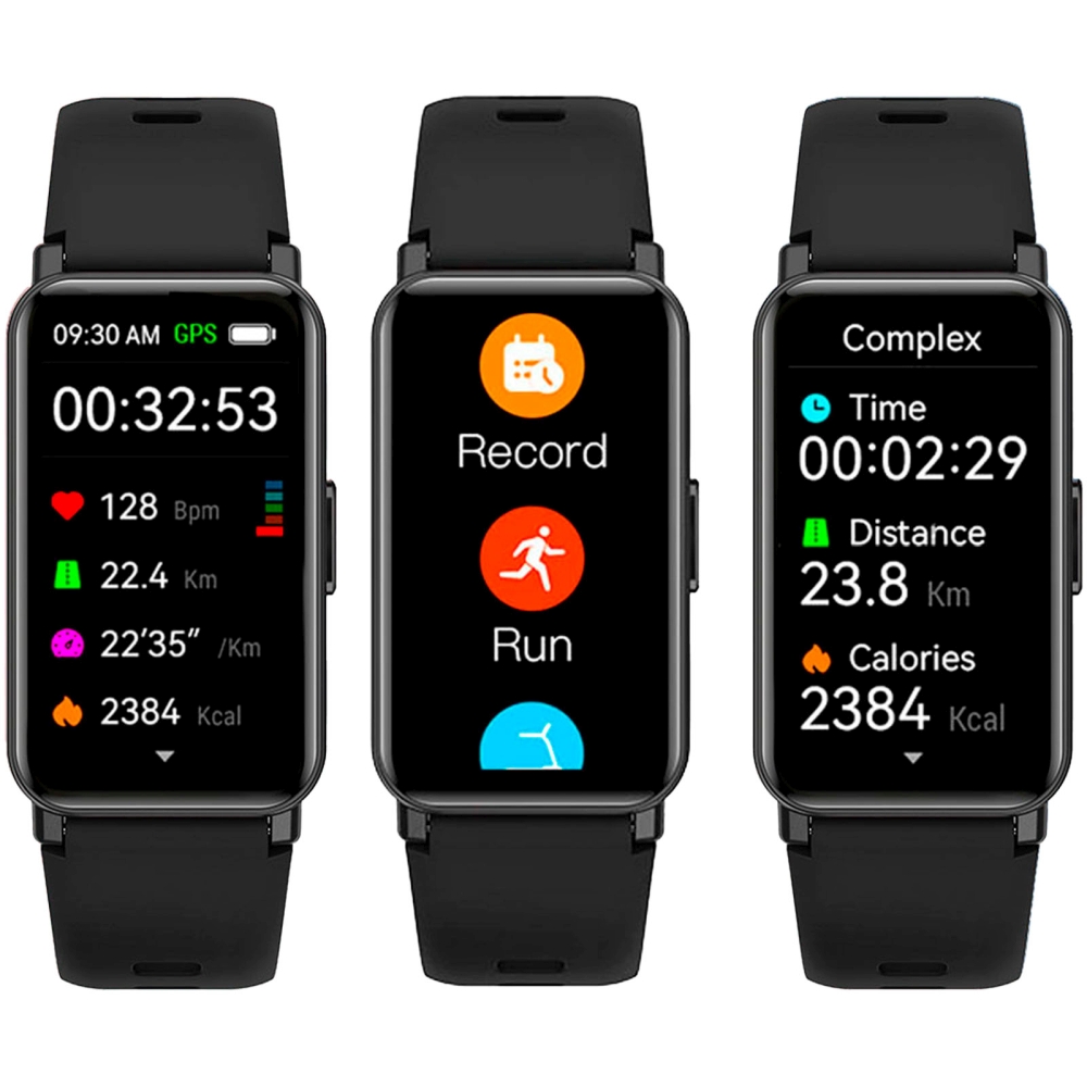 Chytrý náramek má 37 různých sportovních režimů a funkci GPS. Kompatibilní s iOS a Androidem a přijímá a zobrazuje oznámení z připojeného smartphonu. Dodává se s velkou baterií, která dokáže zajistit až 7 dní provozu. 1,45” HD dotykový displej s rozlišením 172x320. Rozměry: 42,8 x 1,23 x 2,5 cm
