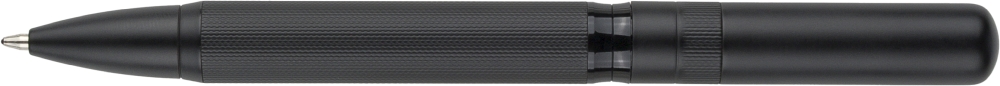 Propiska s otočným mechanismem a kovovým klipem. Vybaveno německým inkoustem. Jednotlivě baleno v černé posuvné krabičce. Modrý inkoust. Rozměry: 2,2 cm x 17 cm.