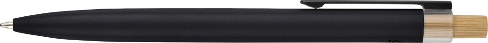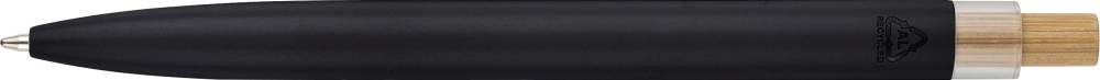Propiska z recyklovaného hliníku s lakovaným tlačítkem, lemováním z rPET a kovovým klipem. S gravírovaným logem z recyklovaného materiálu. Přibližná délka psaní 700 metrů. Modrý inkoust. Rozměry: 1 cm x 14 cm x 1,34 cm.