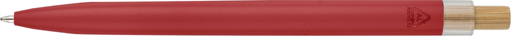 Propiska z recyklovaného hliníku s lakovaným tlačítkem, lemováním z rPET a kovovým klipem. S gravírovaným logem z recyklovaného materiálu. Přibližná délka psaní 700 metrů. Modrý inkoust. Rozměry: 1 cm x 14 cm x 1,34 cm.
