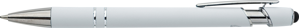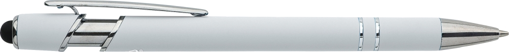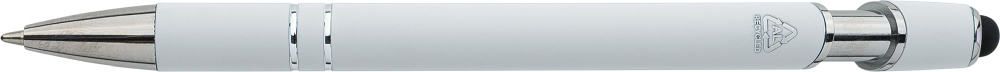 Propiska z recyklovaného hliníku s jednobarevným tělem s pogumovanou úpravou a černým kapacitním dotykovým stylusem. Design se stříbrnými akcenty, tlačítkem a černým inkoustem. Na těle je vyryté recyklované logo. Rozměry: 1,1 x 1,4 x 14,3 cm