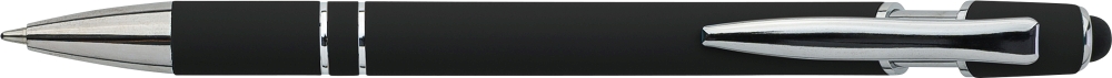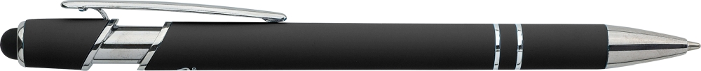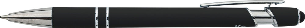 Propiska z recyklovaného hliníku s jednobarevným tělem s pogumovanou úpravou a černým kapacitním dotykovým stylusem. Design se stříbrnými akcenty, tlačítkem a černým inkoustem. Na těle je vyryté recyklované logo. Rozměry: 1,1 x 1,4 x 14,3 cm