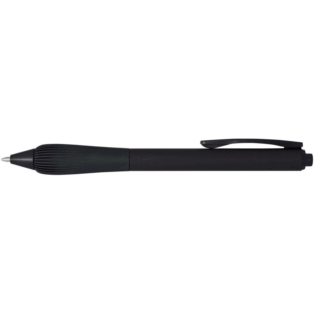 Propiska z recyklovaného plastu s pogumovaným tělem a rukojetí z TPR. Barva inkoustu: Modrá. Délka psaní: 1000 metrů. Rozměr hrotu: 1,0 mm. Rozměry: 14,3 x O 1,02 cm