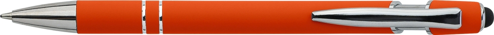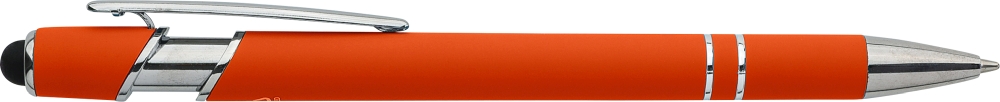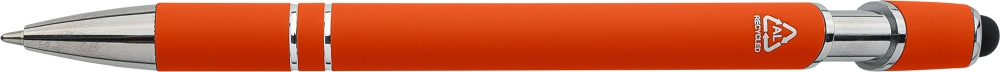 Propiska z recyklovaného hliníku s jednobarevným tělem s pogumovanou úpravou a černým kapacitním dotykovým stylusem. Design se stříbrnými akcenty, tlačítkem a černým inkoustem. Na těle je vyryté recyklované logo. Rozměry: 1,1 x 1,4 x 14,3 cm
