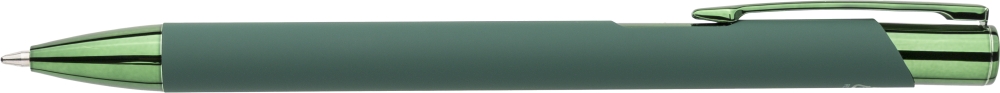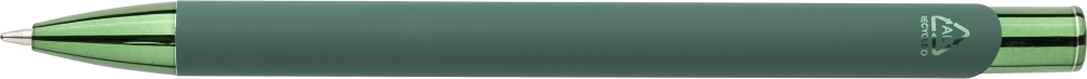 Propiska z recyklovaného hliníku s pogumovaným povrchem a sladěnými plastovými a kovovými detaily s UV vrstvou. Po gravírování se objeví lesklý zrcadlový efekt. S gravírovaným logem z recyklovaného materiálu. Modrý inkoust. Rozměry: 1 cm x 1,3 cm x 13,8 cm.