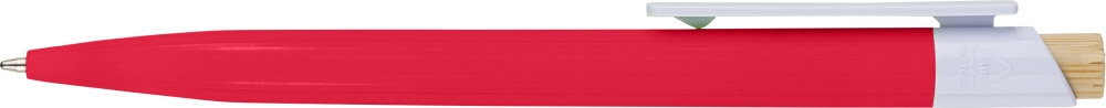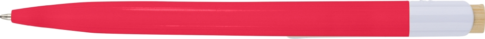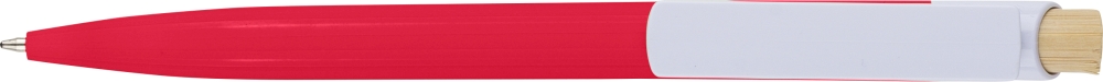 Propiska z recyklovaného ABS plastu s bambusovým tlačítkem a bílým klipem, vhodné pro digitální tisk. Přibližná délka psaní 600 metrů. Modrý inkoust. Rozměry: 1 cm x 1,4 cm x 14,4 cm.