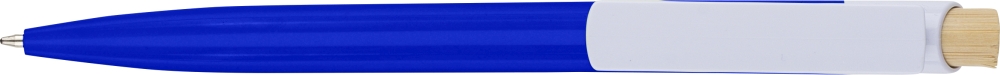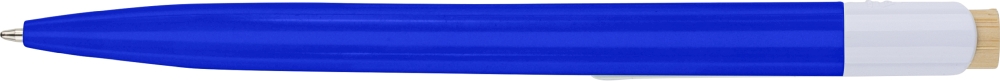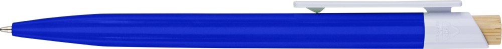 Propiska z recyklovaného ABS plastu s bambusovým tlačítkem a bílým klipem, vhodné pro digitální tisk. Přibližná délka psaní 600 metrů. Modrý inkoust. Rozměry: 1 cm x 1,4 cm x 14,4 cm.