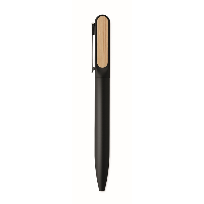 Kuličkové pero s tělem z recyklovaného hliníku, otočnou částí z recyklovaného ABS a kovovým klipem s bambusovým detailem. Modrý inkoust. Rozměry: 14 x 1.2 cm