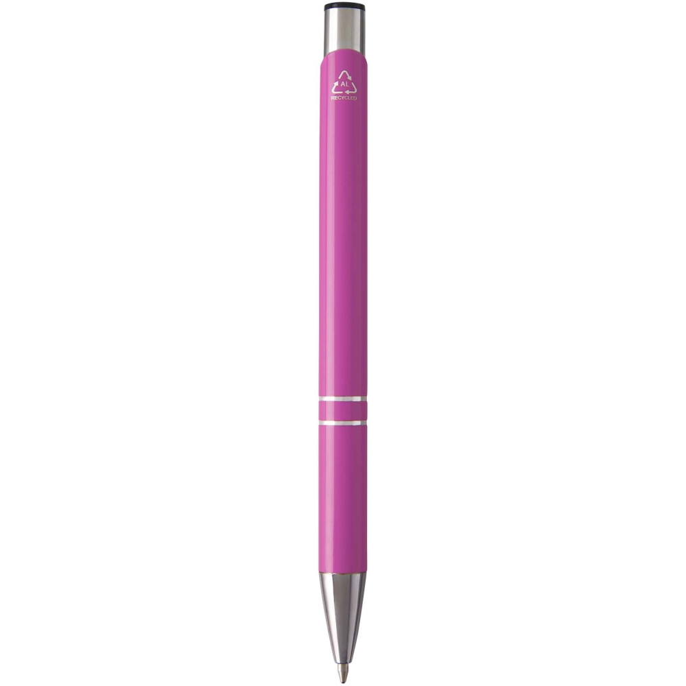 Propiska vyrobená z recyklovaného hliníku, s lakovanou a leštěnou povrchovou úpravou a nápadnými detaily z chromu. Snižuje také množství odpadu na skládkách a pomáhá šetřit přírodní zdroje s cílem snížit emise skleníkových plynů. Barva inkoustu: Modrá. Délka psaní: 1000 metrů. Rozměr hrotu: 1,00 mm. Rozměry: 13,6 x O 1 cm