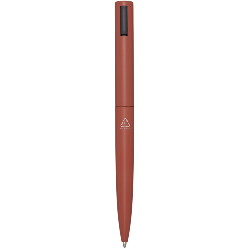 Propiska s horní částí těla vyrobenou z recyklovaného plastu a spodní částí z recyklovaného hliníku. Spona je vyrobena ze železa. Barva inkoustu: Černá. Délka psaní: 1000 metrů. Rozměr hrotu: 1,0 mm. Rozměry: 14,5 x O 1,5 cm