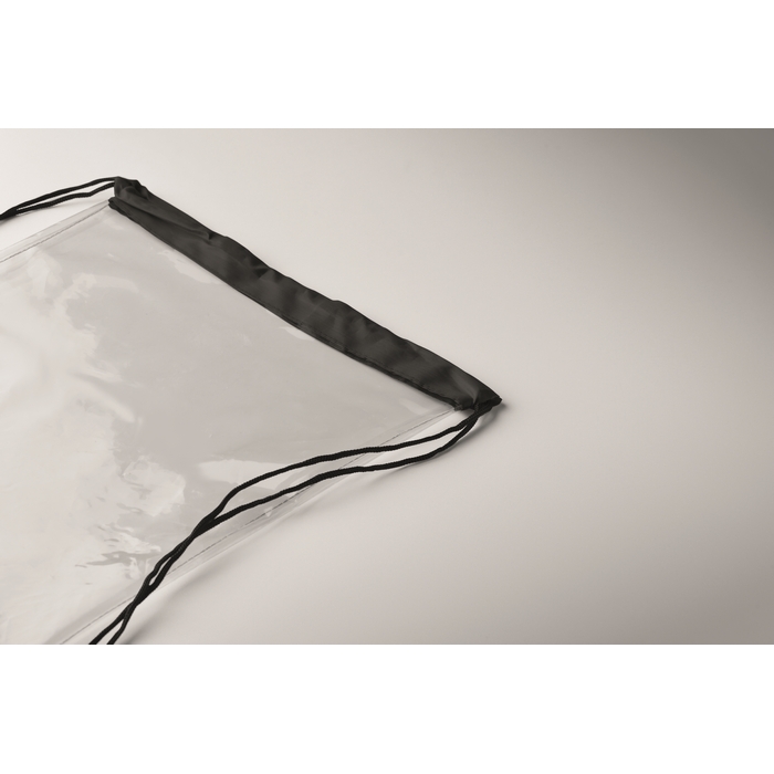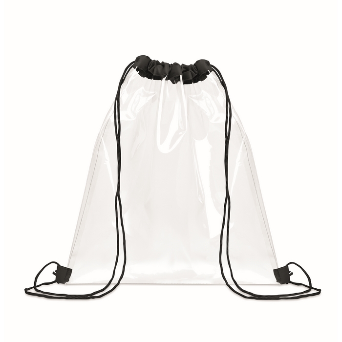 Průhledný stahovací batoh se šňůrkou z EVA a PVC. Polyesterové šňůrky. Rozměry: 36 x 40 cm