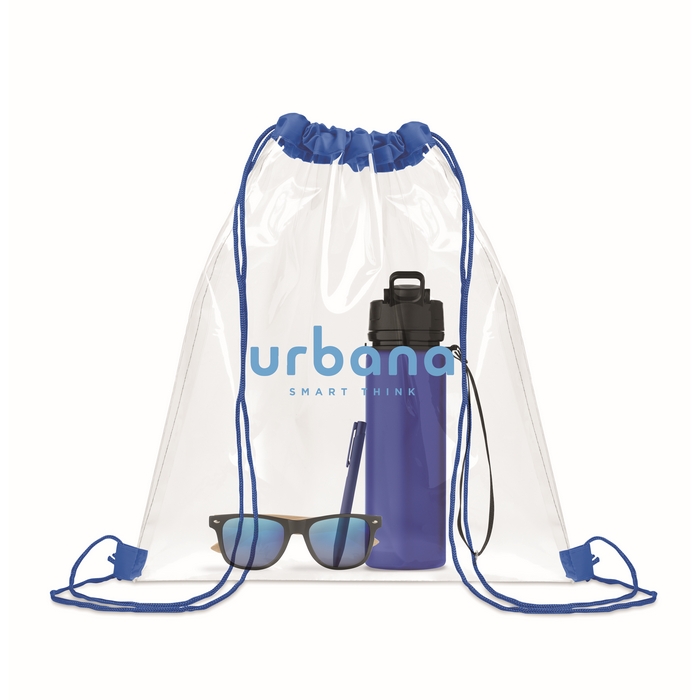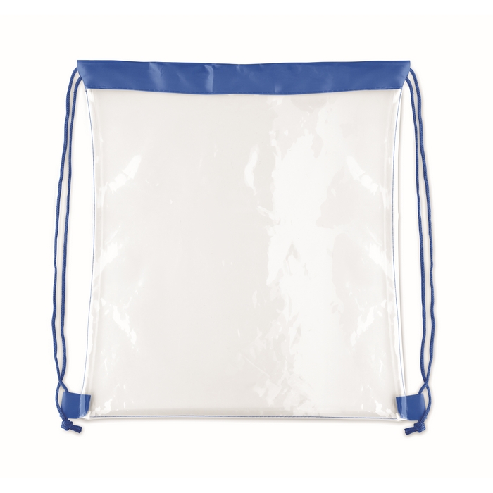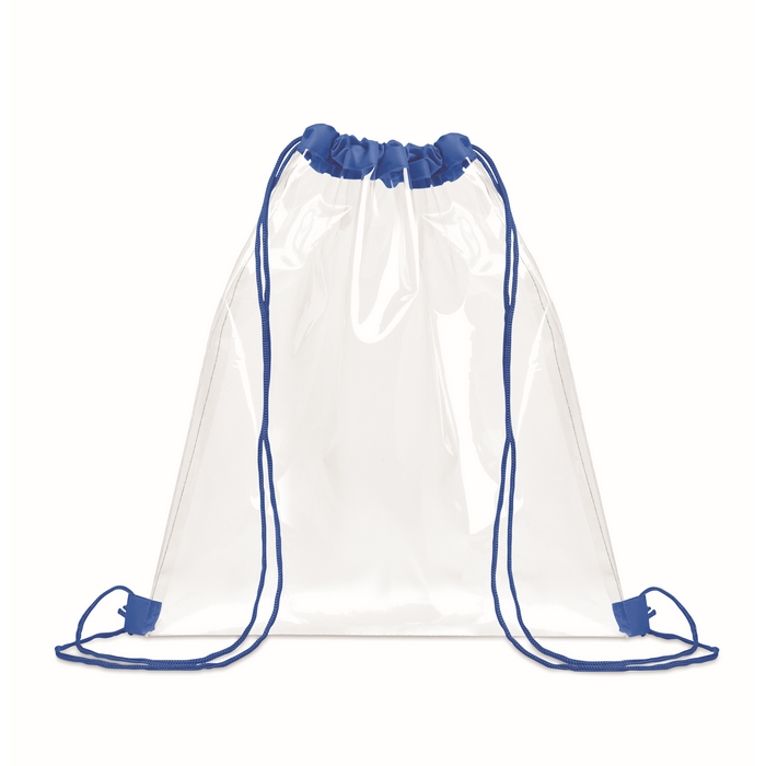Průhledný stahovací batoh se šňůrkou z EVA a PVC. Polyesterové šňůrky. Rozměry: 36 x 40 cm