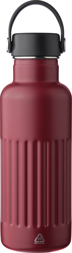 Dvoustěnná láhev na pití z recyklované nerezové oceli (500 ml). Víko z PP a železa s rukojetí z TPE pro snadné přenášení. Na těle je vyryté recyklované logo. Jednotlivě baleno v hnědé kartonové krabici. Rozměry: 7,5 cm x 22,5 cm