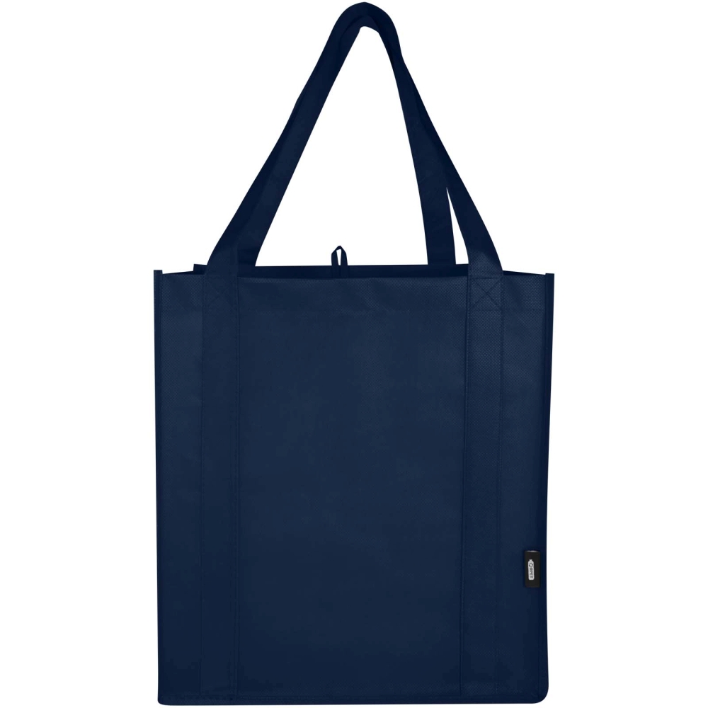 Recyklovaná netkaná nákupní taška s pevným dnem, námořní modrá