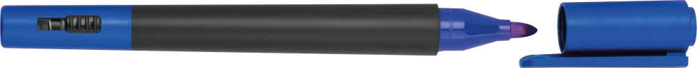 2v1 řezák s fixou, vyrobené z plastu. Fixa píše barvou uzávěru. Rozměry: o 1,1 x 14,3 cm
