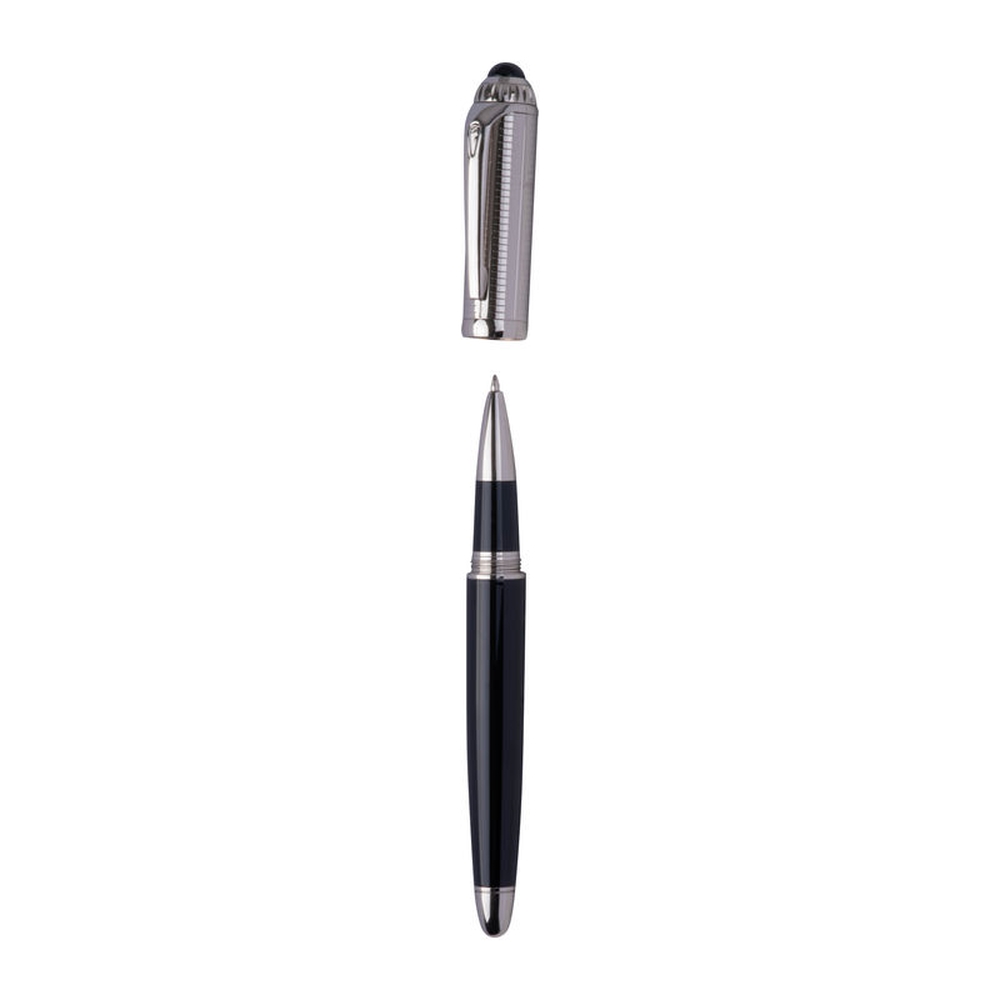 Roller Ferraghini z nerezové oceli, s modrým inkoustem a s charakteristickým “F” na klipu, délka psaní až 400 m. Balené v kvalitní krabičce. Rozměry: 6,8 x 7,1 x 17,1 cm