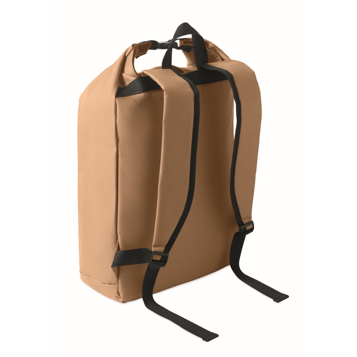 Rolovací batoh na 15 notebook z polyesteru 600D RPET s polstrovanou podšívkou z 210D RPET. Má přední kapsu na zip, elastickou boční kapsu a nastavitelné ramenní popruhy. Rozměry: 31 x 14 x 46 cm