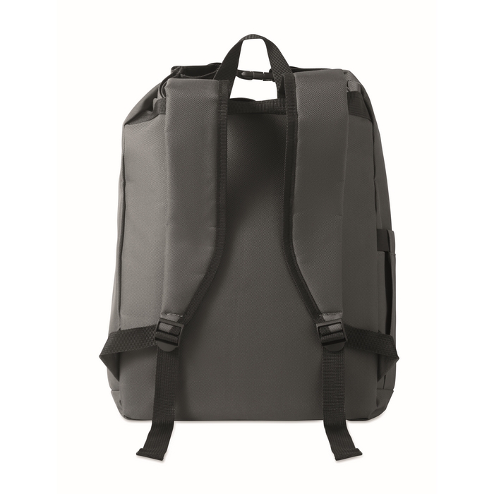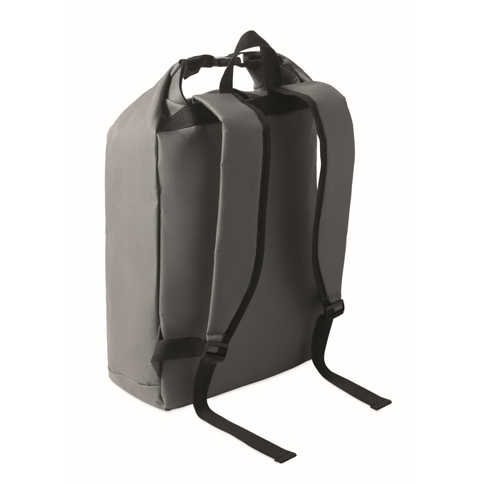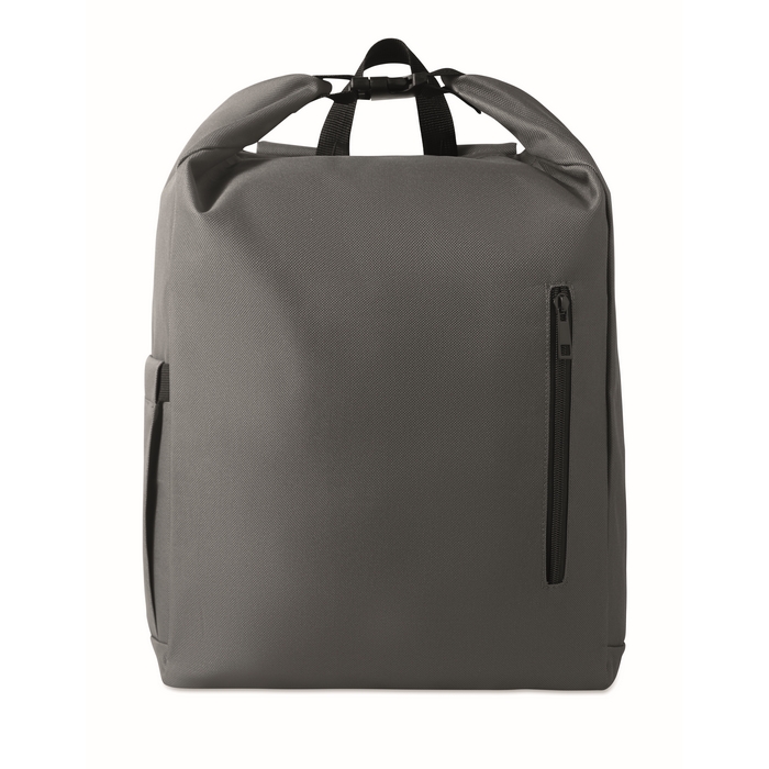 Rolovací batoh na 15 notebook z polyesteru 600D RPET s polstrovanou podšívkou z 210D RPET. Má přední kapsu na zip, elastickou boční kapsu a nastavitelné ramenní popruhy. Rozměry: 31 x 14 x 46 cm