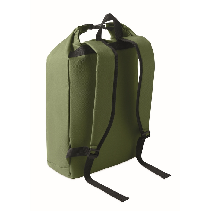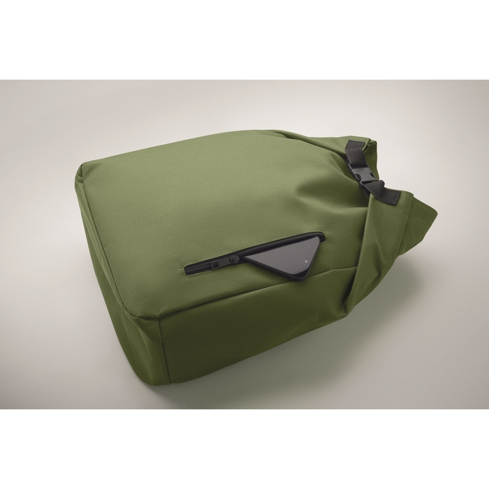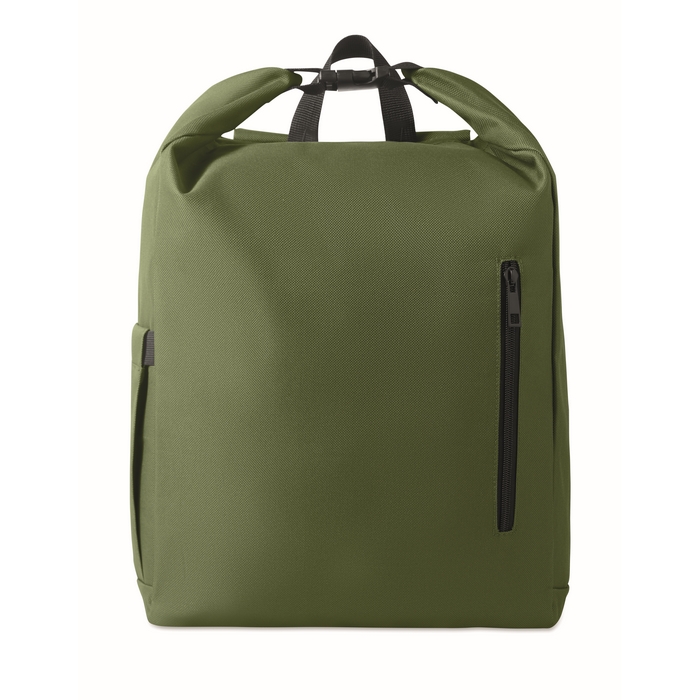 Rolovací batoh na 15 notebook z polyesteru 600D RPET s polstrovanou podšívkou z 210D RPET. Má přední kapsu na zip, elastickou boční kapsu a nastavitelné ramenní popruhy. Rozměry: 31 x 14 x 46 cm