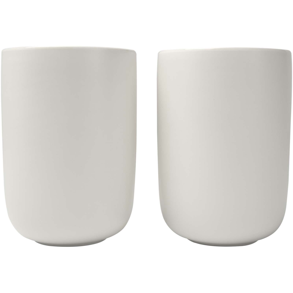 Vychutnejte si své oblíbené horké nápoje díky sadě 2 keramických hrnků o objemu 350 ml. Každý šálek má perfektní velikost pro kávu, čaj nebo jiné nápoje a má hladký povrch a ergonomický design pro pohodlné držení. Elegantní a moderní styl dodá eleganci každé kuchyni nebo kavárně. Díky velkorysému objemu 350 ml je tato sada ideální pro ty, kteří preferují větší a uspokojivější porci. Rozměry: 8,2 x 11,5 x 8,2 cm