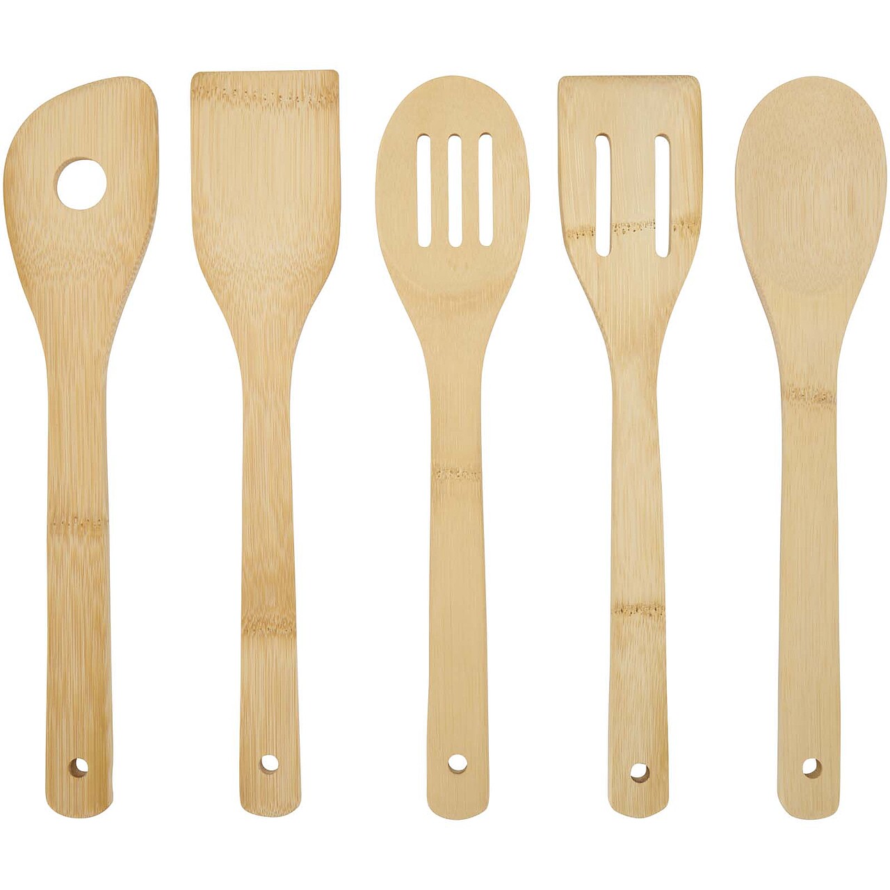 Sada bambusových kuchyňských špachtlí s odpovídajícím držákem navržená tak, aby byla odolná, lehká a bezpečná pro nádobí s nepřilnavým povrchem. Tato přírodní sada je ideální pro každodenní vaření a pomůže vám udržovat pořádek v kuchyni. Součástí balení je lžíce (29,8 × 5,8 cm), děrovaná lžíce (29,8 × 5,8 cm), obracečka (30,3 × 6,1 cm), děrovaná obracečka (30 × 6 cm) a děrovaná lopatka (30 × 6 cm), přičemž všechny nástroje jsou vyrobeny z materiálu o tloušťce 0,8 cm pro spolehlivé použití. Rozměry: 30 x O 8 cm