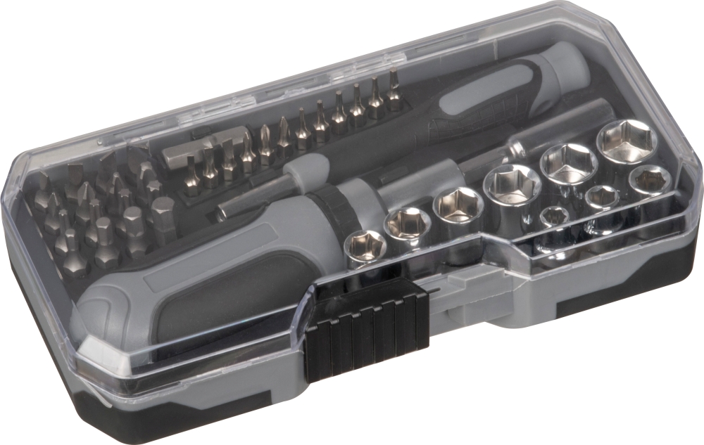 41dílná sada nářadí v praktickém úložném kufříku. Rozměry: 17,8 x 9,6 x 3,4 cm