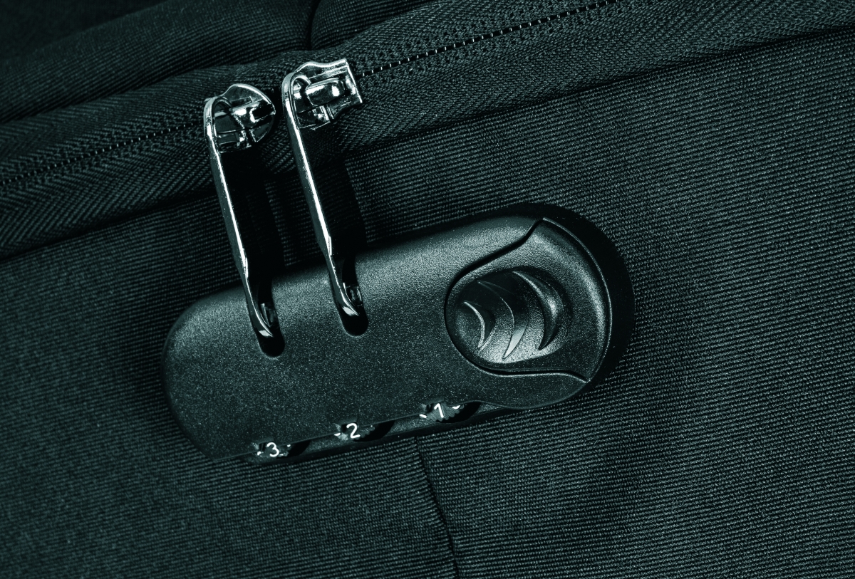 Bezpečnostní batoh značky Schwarzwolf s prvky, které znesnadňují vykradení. Vstup do hlavního prostoru zajišťuje zip, který je umístěn na Vašich zádech, je tedy těžko přístupný někým jiným a táhla zipu jsou zajištěna kódovým zámkem. Batoh má také skrytou kapsu pro platební kartu nebo klíče. Ve vnitřní části je polstrovaný prostor pro notebook o velikosti 15“ a tablet o velikosti 10“. Součástí je i USB výstup včetně USB kabelu. V zadní části je pás pro připevnění k cestovnímu kufru. Přední plocha je opatřena refexním doplňkem. Objem 20 l. Hmotnost 720 g. Materiál 210D polyester. Rozměry: 30 × 46 × 15 cm. Uhlíková stopa: gCO2 e13848.