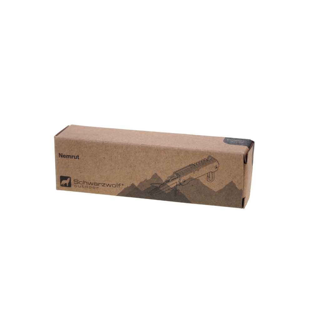 Multifunkční kapesní nůž značky Schwarzwolf. Obsahuje 9 nástrojů – nůž, nůžky, pilku, vývrtku, otvírák lahví, otvírák na konzervy, plochý šroubovák, křížový šroubovák a karabinku. Rukojeť je z jedné strany v moderním vroubkovaném designu, z druhé strany hladká pro umístění Vašeho loga. Baleno v dárkové krabičce. Materiál: nářadí – nerezová ocel 2Cr13, rukojeť – anodizovaný hliník. Rozměry: v zavřeném stavu 9,7 × 2,7 × 1,9 cm. Uhlíková stopa: gCO2 e1727.