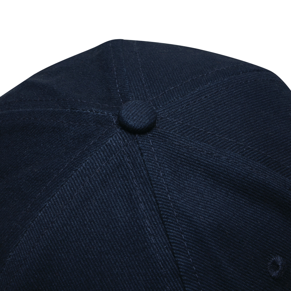 6panelová baseballová čepice: zesílený přední panel, 6 větracích otvorů, zapínání na knoflík nahoře, nastavitelný pásek s kovovou přezkou vzadu, 100% bavlna (silně kartáčovaná).