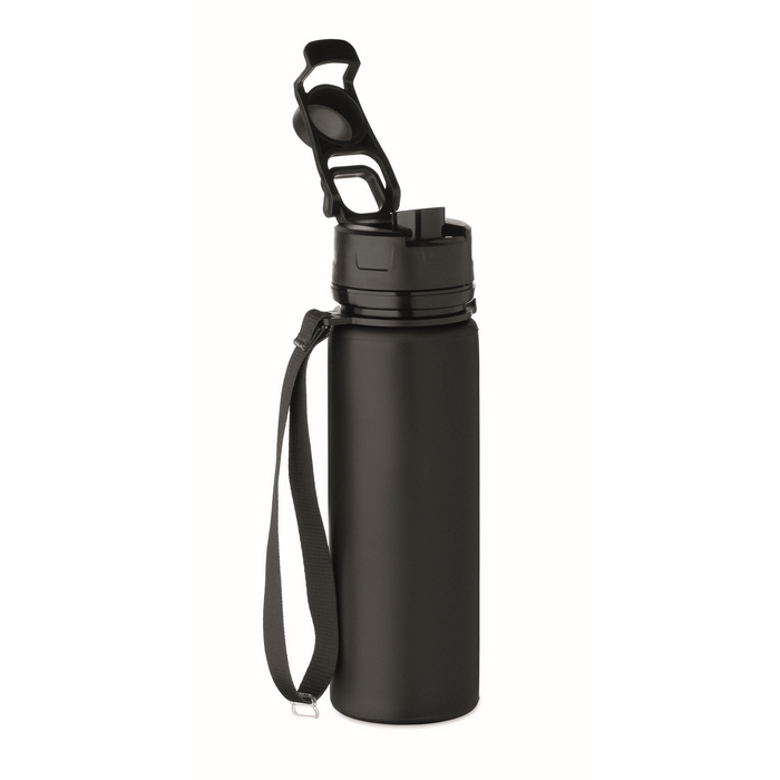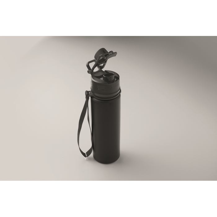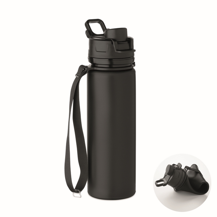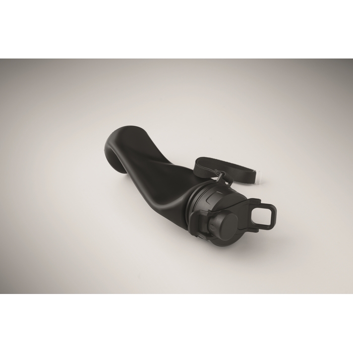 Skládací silikonová sportovní láhev s PP víčkem, rukojetí, polyesterovým popruhem a průhlednou sponou pro zajištění ve složeném stavu. Objem: 500 ml. Rozměry: O6.7 x 24 cm