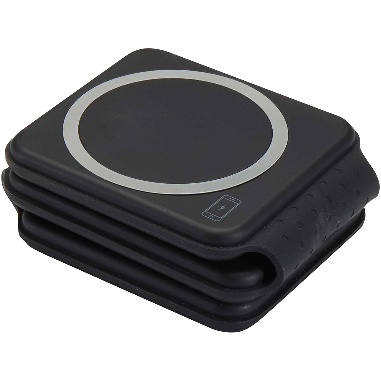 Skládací bezdrátová nabíječka 3v1 z recyklovaného plastu s výkonem 15 W, černá