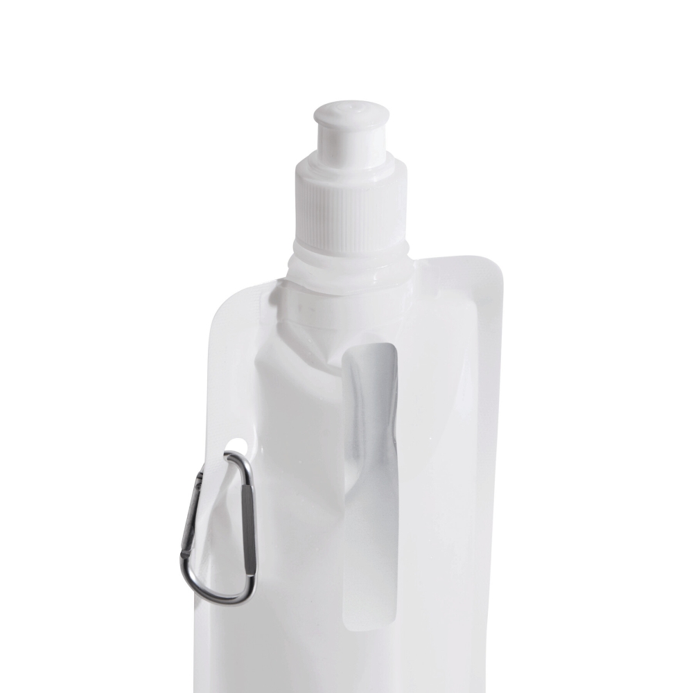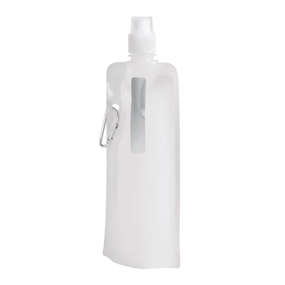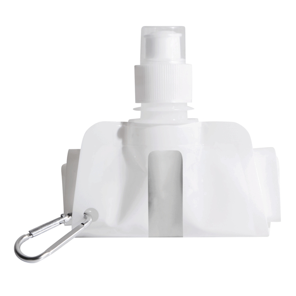 Skládací láhev na pití, po vyprázdnění lze srolovat, průhledné zapínání na push-pull uzávěr, s karabinou (karabina NENÍ vhodná pro lezení), objem cca 400 ml. Rozměry: 11,8 x 26,5 cm