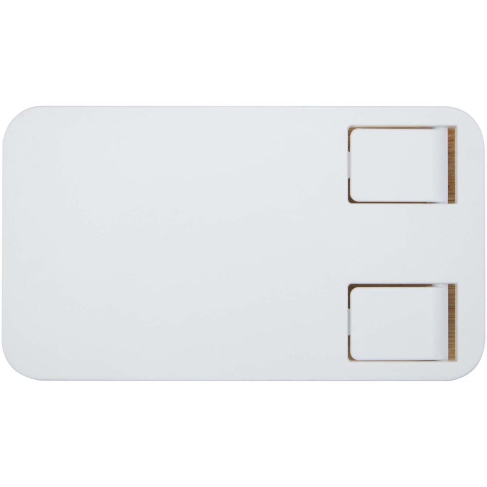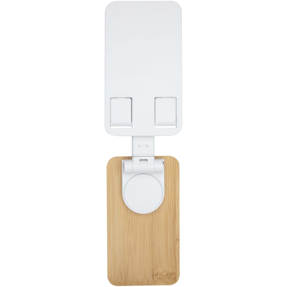 Skládací stojan na telefon z recyklovaného plastu s bambusovými detaily, bílá
