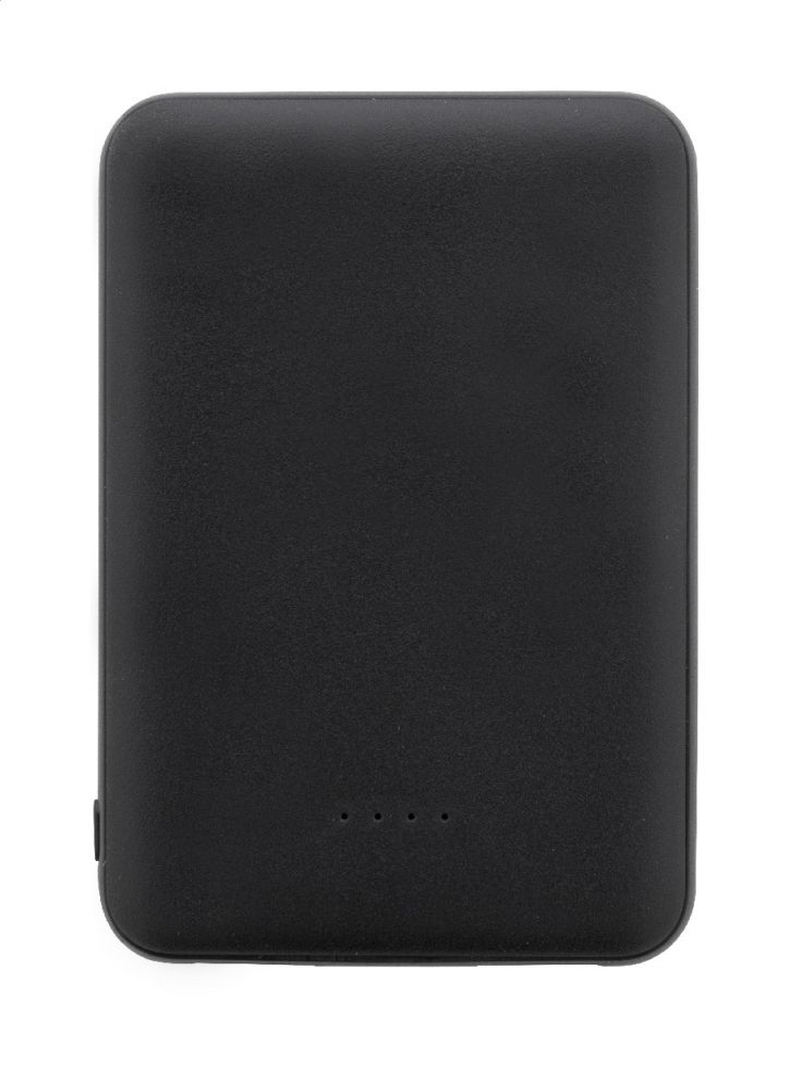 Power banka z recyklovaného ABS plastu s baterií 5 000 mAh. Se 2 USB a 1 nabíjecím portem USB-C. Vstupní porty micro USB a USB-C. Včetně nabíjecího kabelu USB. Rozměry: 6,4 × 9,3 × 1,4 cm.