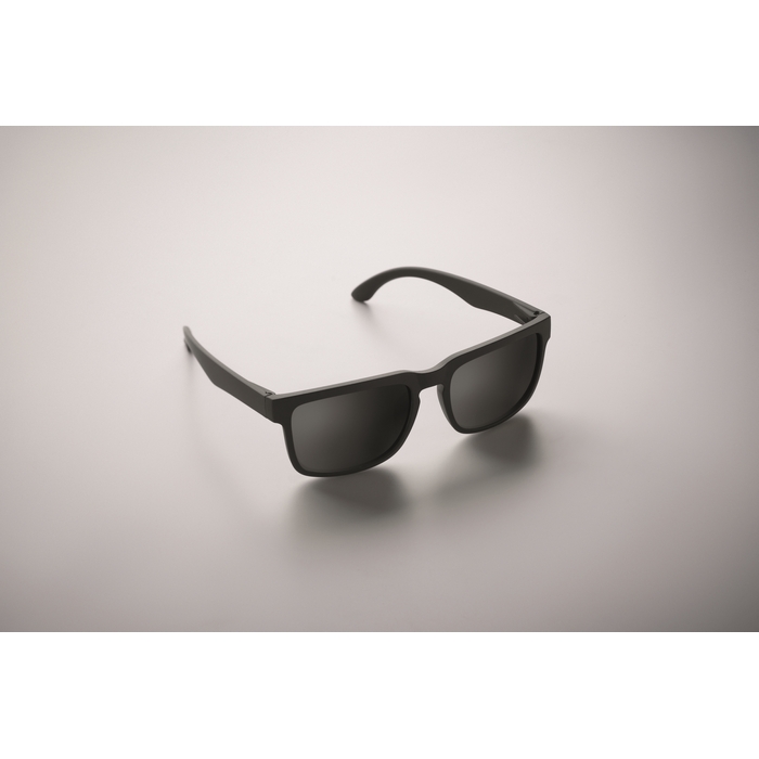 Festivalové sluneční brýle se zrcadlovými skly a matným pogumovaným rámečkem. Ochrana UV400. Rozměry: 14.1 x 4.7 x 14.8 cm