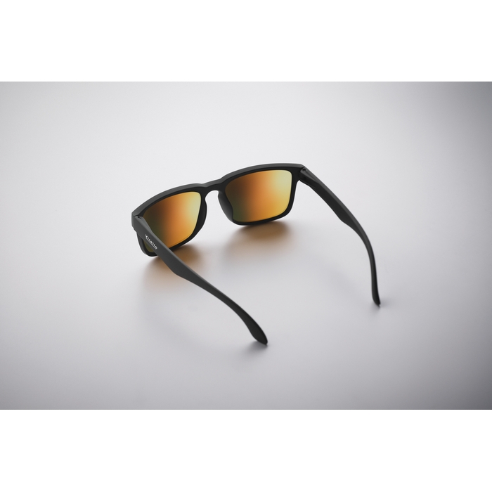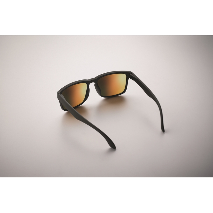 Festivalové sluneční brýle se zrcadlovými skly a matným pogumovaným rámečkem. Ochrana UV400. Rozměry: 14.1 x 4.7 x 14.8 cm