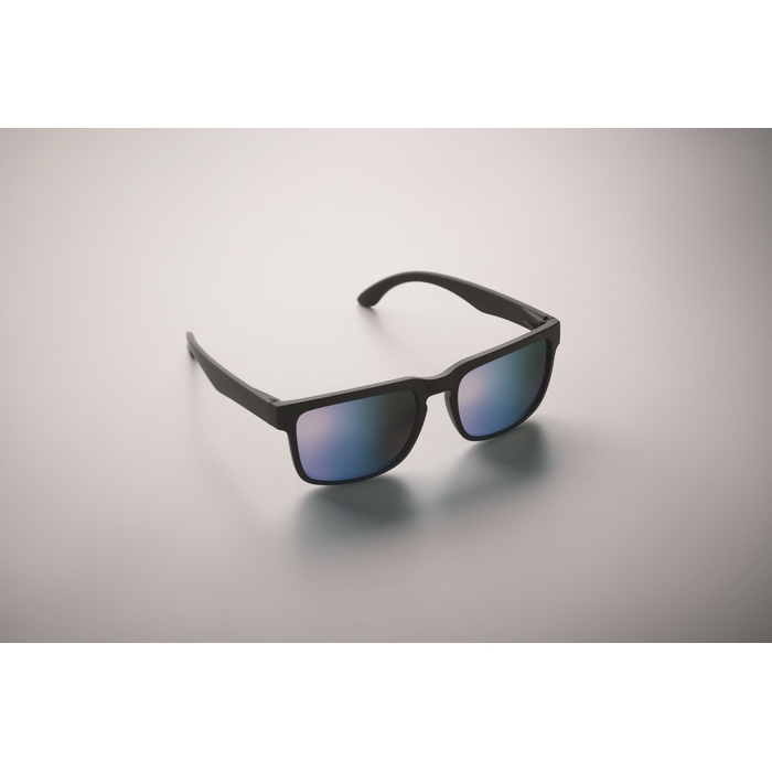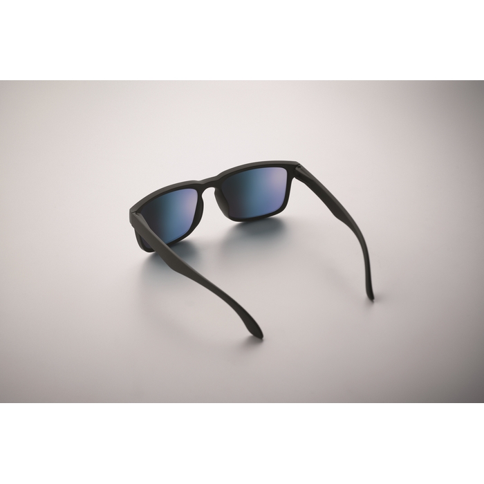 Festivalové sluneční brýle se zrcadlovými skly a matným pogumovaným rámečkem. Ochrana UV400. Rozměry: 14.1 x 4.7 x 14.8 cm