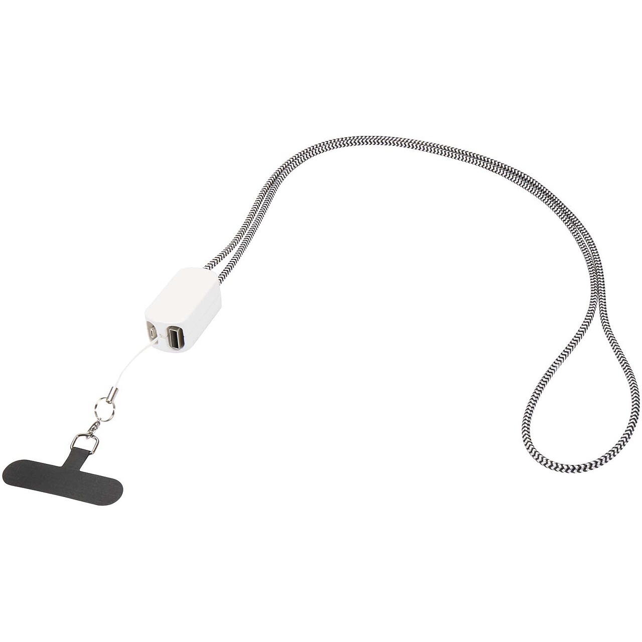 Šňůrka na smartphone z recyklovaného plastu s integrovaným 27 W 5v1 kabelem, bílá