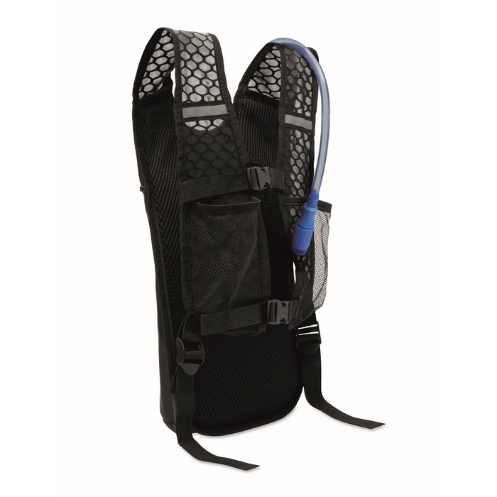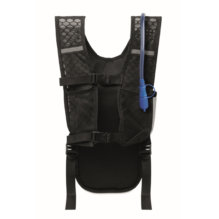 Sportovní hydratačníbatoh z voděodolného materiálu 420D PU/nylon s detaily ze síťoviny. Součástí je 1500ml EVA nádoba na vodu s PVC trubičkou a zámkem. Lehký, odolný a ideální pro outdoorové aktivity. Rozměry: 20 x 6 x 39 cm
