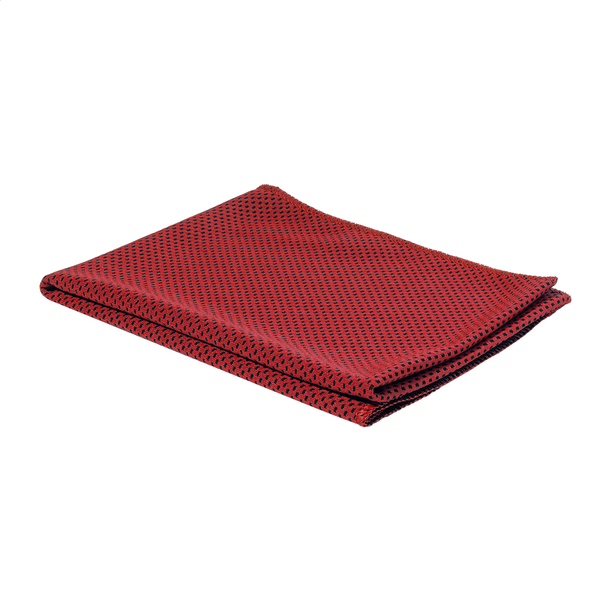 Chladicí sportovní ručník z RPET polyesteru v RPET sportovní lahvi s PP víčkem typu flip-top, integrovaným brčkem a přenosným popruhem. Objem 800 ml. Neobsahuje BPA. Není vhodná pro sycené nápoje. Velikost ručníku: 30 × 80 cm.