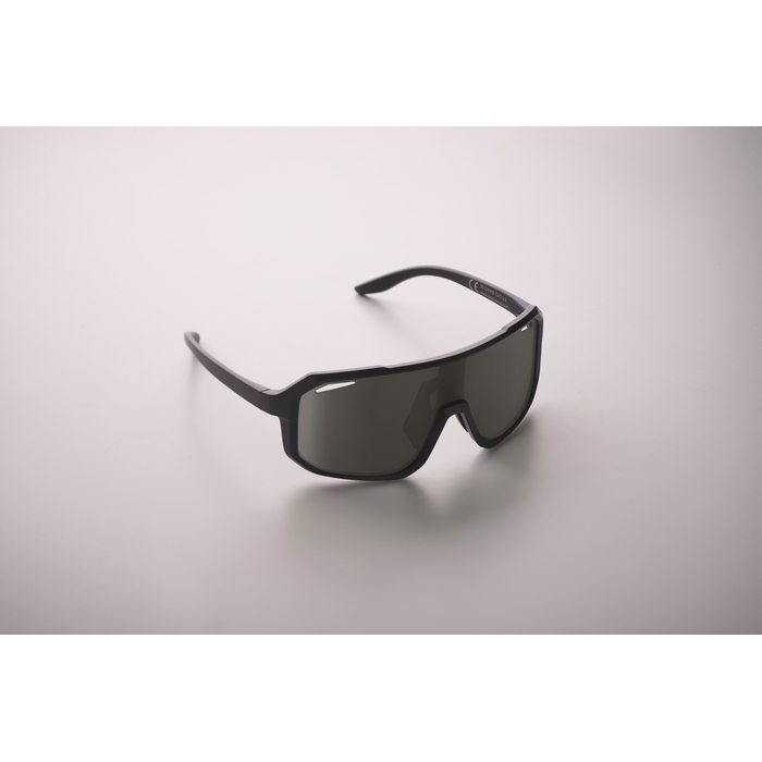 Sportovní sluneční brýle se zrcadlovými skly a barevným rámečkem. Ochrana UV400. Rozměry: 14.7 x 5.8 x 12.8 cm